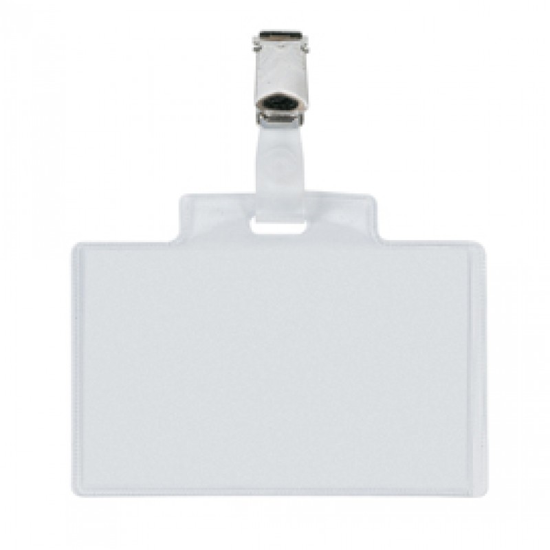 Porta nomi in PVC trasparente, alto spessore, completi di pinzette in metallo e cartoncini. Adatti a congressi, riunioni, visite guidate. Apertura lato corto (laterale). Formato 95x60 mm.
