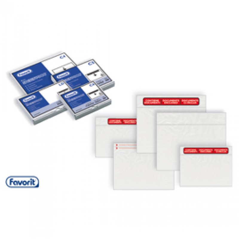 Busta adesiva Speedy Doc - con stampa "contiene documenti" - C5 (23 x 16,5 cm) - PPL/PE - trasparente - Favorit - conf. 1000 pezzi