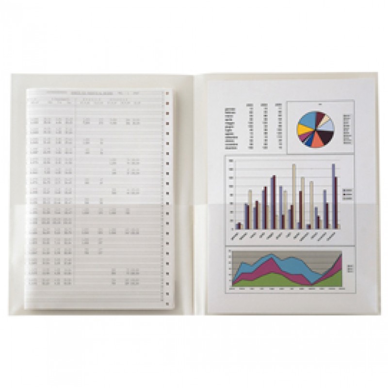 Portalistini personalizzabili in PP bianco con buste liscie. Le due copertine trasparenti sono perso..