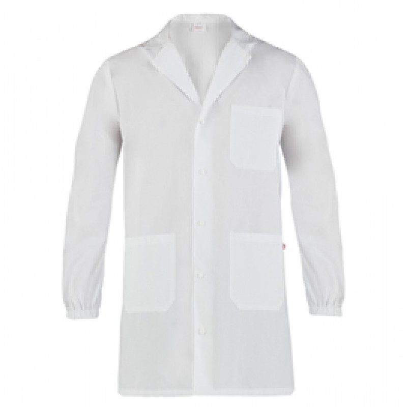Camice ospedaliero da uomo con un taschino applicato al petto sinistro e due tasche inferiori. Chiusura centrale con automatici. 100% cotone. Polsi elasticizzati. Taglie disponibili: da XS a 4XL. Regualr Fit..