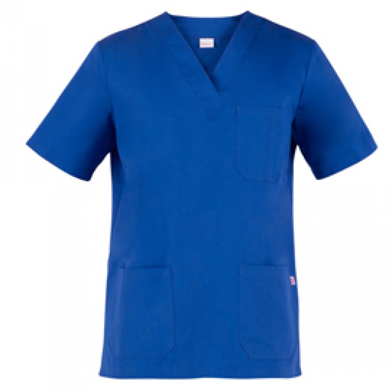 Casacca 100% cotone a maniche corte. Con un taschino applicato al petto sinistro e due tasche inferiori, 2 spacchetti laterali. Ideale per abiente ospedaliero. Taglie disponibili: da XS -4XL. Slim Fit.