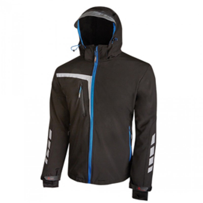 Giacca Soft Shell traspirante , tasca su petto con chiusura zip portacellulare e tecnologia Free Sound; due tasche frontali con chiusura zip; 2 ampie tasche interne; tessuto di rinforzo in polyoxford nella parte bassa posteriore; maniche preformate per vestibilità ottimale; cappuccio regolabile e staccabile con visiera in tessuto reflex; polsini regolabili con velcro e polsino antivento elasticizzato con buco per il pollice; fondo sagomato; coulisse antimpigliamento regolabile all’interno della tasca; Inserti reflex per garantire la massima visibilità. Soft Shell sfoderato da lavoro per Carpentieri, Imprese di pulizia, Installatori, Magazzinieri, Meccanici. Conformità alla norma CE, EN ISO 13688:2013, Regolamento UE 2016/425 CAT.I