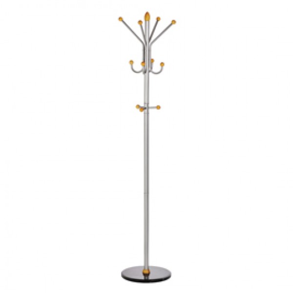 Appendiabiti in acciaio e abs con base appesantita. Dotato di 6 supporti abito, 3 ganci e portaombre..