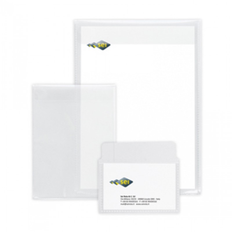 Buste in polipropilene liscio, alto spessore, con patella. Adatte a contenere tessere, documenti, fotocopie, istruzioni, carte di credito e biglietti da visita. Formato contenuto: 230x330mm.