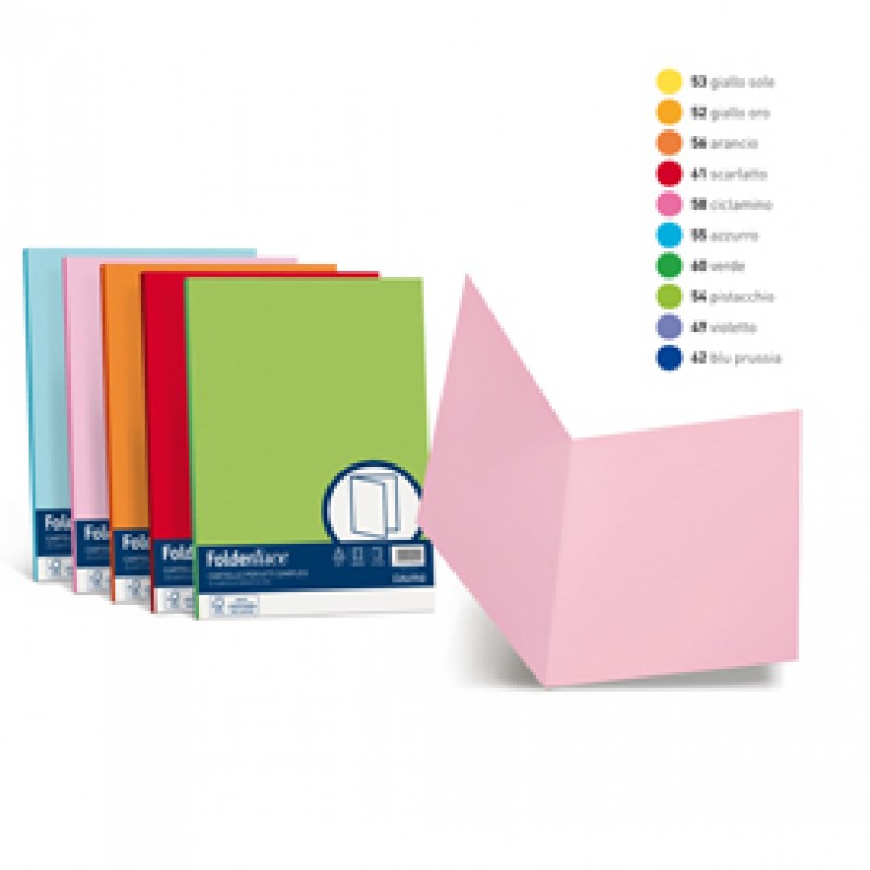 Cartelline semplici in cartoncino bristol liscio su ambo i lati in colori accesi. Formato 25x34cm.