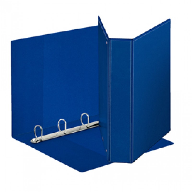 Raccoglitore display formato Maxi, in cartone da 2 mm rivestito in polipropilene eco-compatibile con finitura tipo pelle. Il rivestimento, incollato su entrambi i lati e saldato ai bordi, garantisce un prodotto di qualità eccellente. Il formato del raccoglitore consente di inserire indici e intercalari in formato Maxi per ospitare buste a perforazione universale. La personalizzazione è resa agevole da tre tasche esterne, mentre due tasche interne permettono di contenere fogli sparsi e appunti. Meccanismo a 4 anelli (a D, altezza 50 mm). Formato utile: 22x30 cm (A4). Dimensioni: 270x350x50 mm. Capacità: 480 fogli A4 (80 gr/mq). Colore blu.