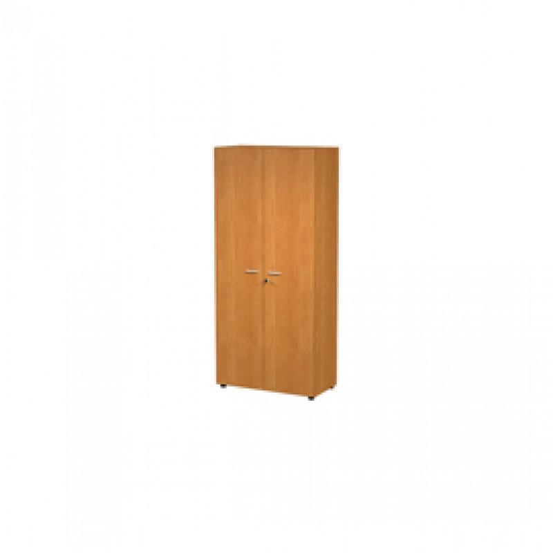 Armadio a 2 ante battenti alte con serratura. 3 ripiani spostabili + 1 fisso. Dimenzioni: L90 x P45,8 x H200 cm. Linea di armadi componibile particolarmente robusti e stabili, costituiti da struttura alta 200cm e completabili con sopralzo alto 40cm. Grande profondità di 46cm e larghezza di 90 cm. Struttura spessore 18mm. Lato posteriore rifinito da ambo i lati con pannello rigido in spessore 10 mm. Ripiani interni in sp. 25mm. Piedini regolabili per la massima stabilità.