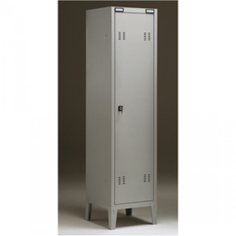 Armadio spogliatoio ad 1 posto L38 x P35 x H180cm; in metallo verniciato grigio, provvisto di serratura e chiavi. Fornito montato.