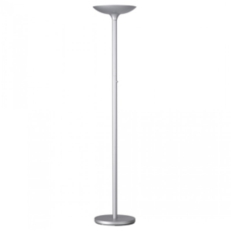 Piantane essenziali e funzionali; lo smalto riflettente all'interno della calotta assicura un'eccellente illuminazione indiretta. Base zavorrata per la massima stabilità. Dimmer sul fusto. Altezza 180cm. Led 29,9W integrato. Made in China.