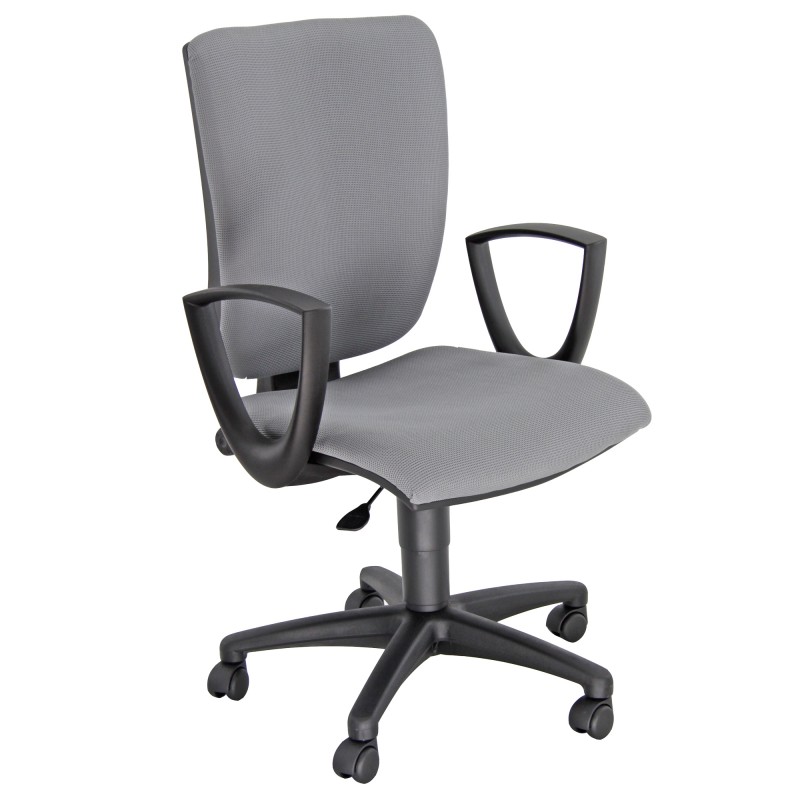 Seduta operativa girevole - elevazione a gas - schienale regolabile up-down - meccanismo a contatto permanente con molla di ritorno. Rivestimento seduta in tessuto "SUPER - Target" 100% poliestere e reazione al fuoco classe 1. Completa di braccioli fissi. Alt.tot.: 96-108cm; Prof.tot.: 68cm; Alt.schienale: 46cm; Larg.schienale: 46cm; Larg.seduta: 50cm; Prof.Sedile: 46cm; Alt. sedile: 42-54cm.