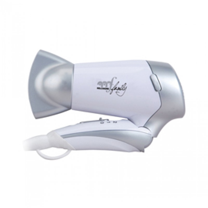 Asciugacapelli da viaggio a doppia alimentazione 115v/230v. 2 posizioni di temperatura e autospegnimento di sicurezza. Manico pieghevole. Potenza 1200w.