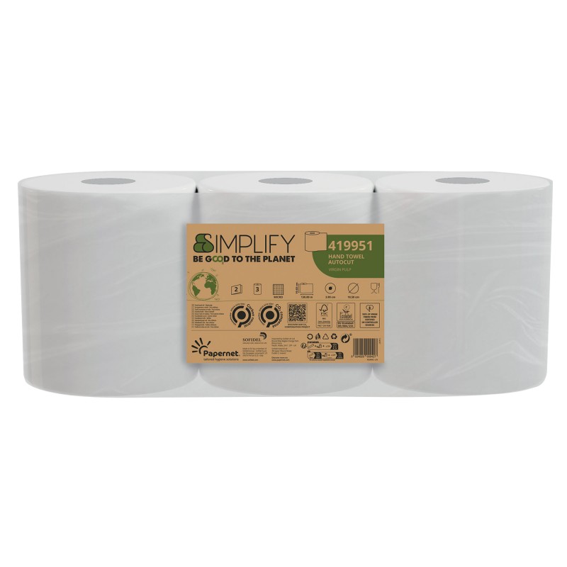 Asciugamani in rotolo Autocut Simplify - 19,6 cm x 130 m - diametro 18,5 cm - 19,5 gr - 2 veli - bianco - Papernet