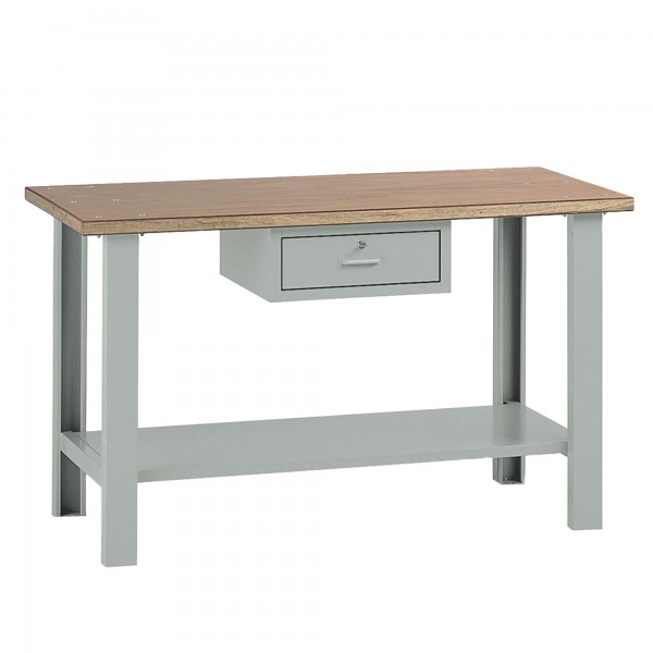 Banco da lavoro - con cassetto - 150 x 75 x 90 cm - grigio/legno - Tecnotelai