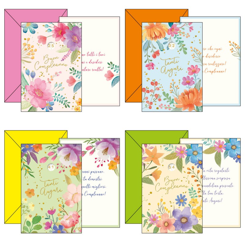 Biglietto auguri Buon Compleanno - con ruota tema floreale - 4 soggetti assortiti - Kartos