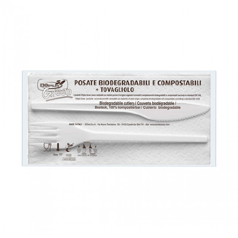 Bis posate - in estabio - con tovagliolo 2 veli - Dopla - conf. 100 pezzi