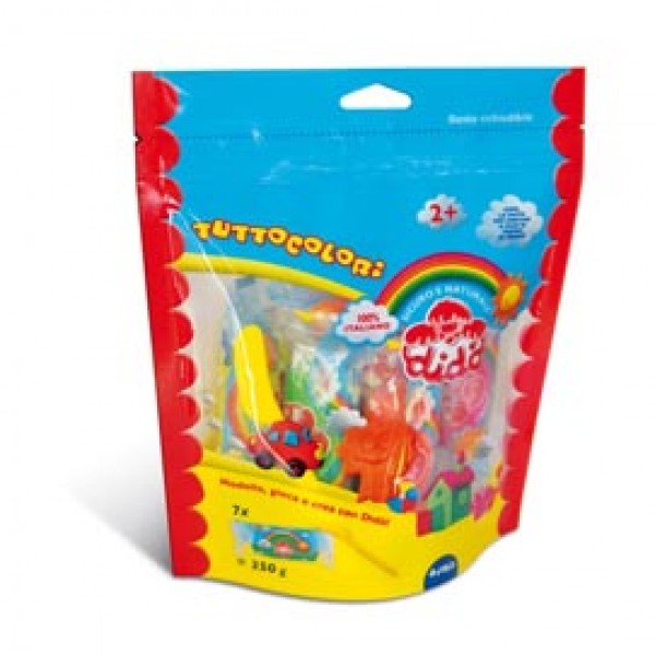 Busta minigrip appendibile e richiudibile contenente 7 salsicciotti Didò ed un coltellino per creare morbidi giochi. Prodotto indicato per bambini già a partire dai 2 anni, il contenuto è a vista grazie alla finestra trasparente e la busta può essere anche posizionata a banco grazie al soffietto sul fondo.