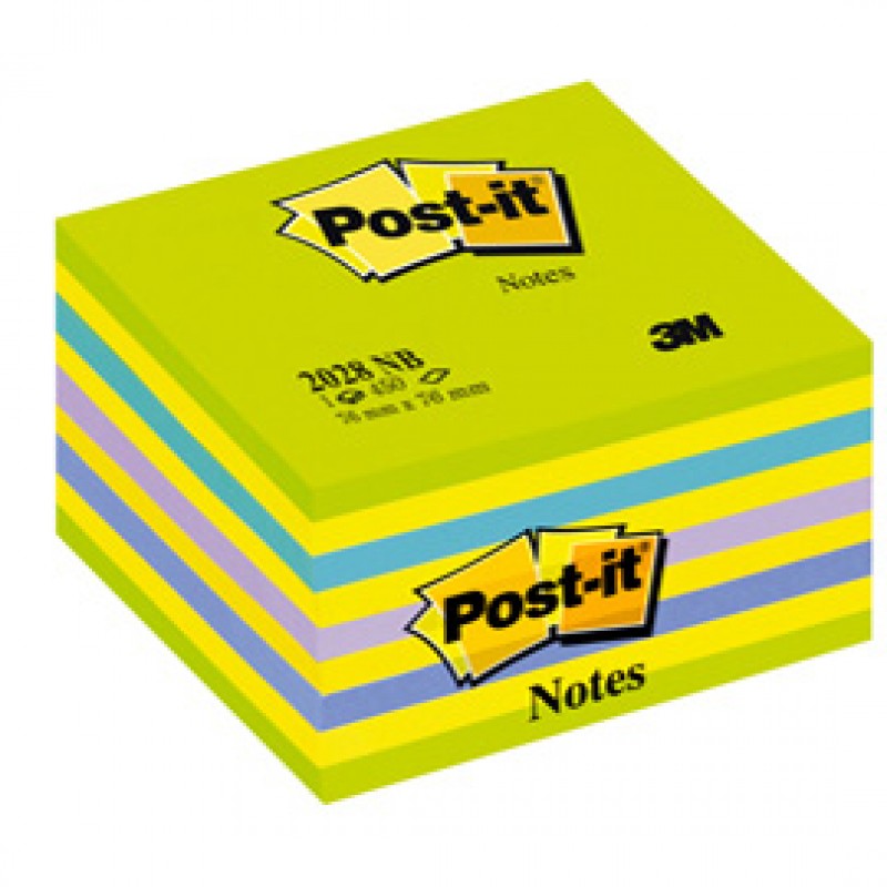 Blocco foglietti Cubo - 2028-NB - 76 x 76 mm - 72 gr - colori assortiti - 450 fogli - Post it®