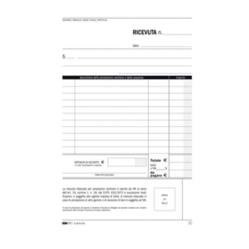 BLOCCO RICEVUTE SANITARIE. Formato 23x15cm. Formato 50 fogli . 2 copie ric.