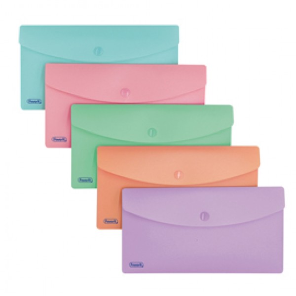 Buste con bottone - PPL - 9,9 x 21 cm - colori assortiti Pastel - Favorit - conf. 5 pezzi