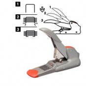 Cucitrice a braccio lungo in acciaio con inserti in gomma e materiale plastico. Punto chiuso e apert..