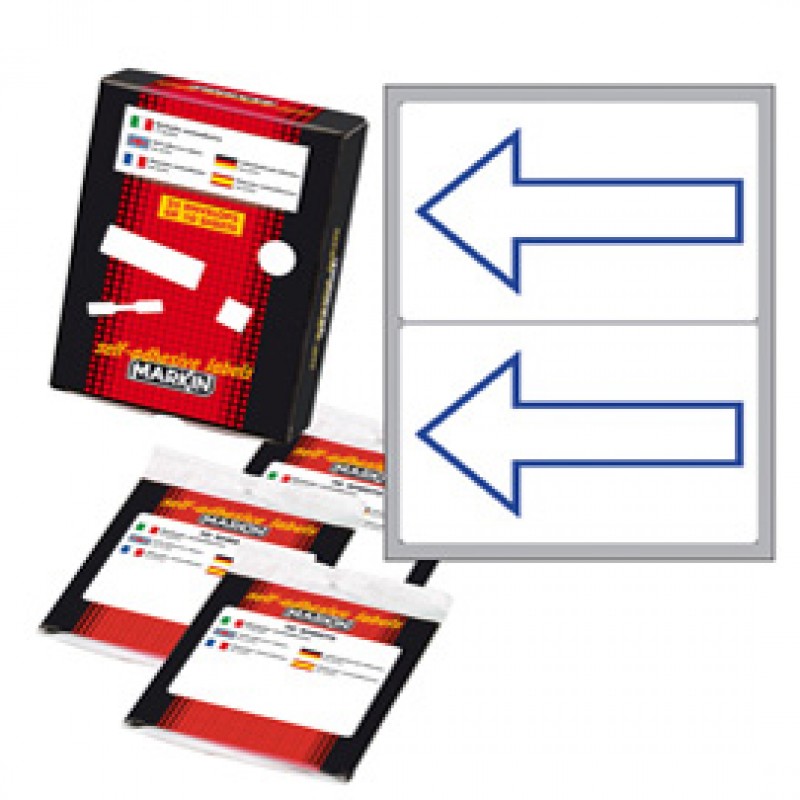 Etichetta adesiva - permanente - simbolo freccia blu (alto) - 115x70 mm - 2 etichette per foglio - 10 fogli per busta - bianco - Markin