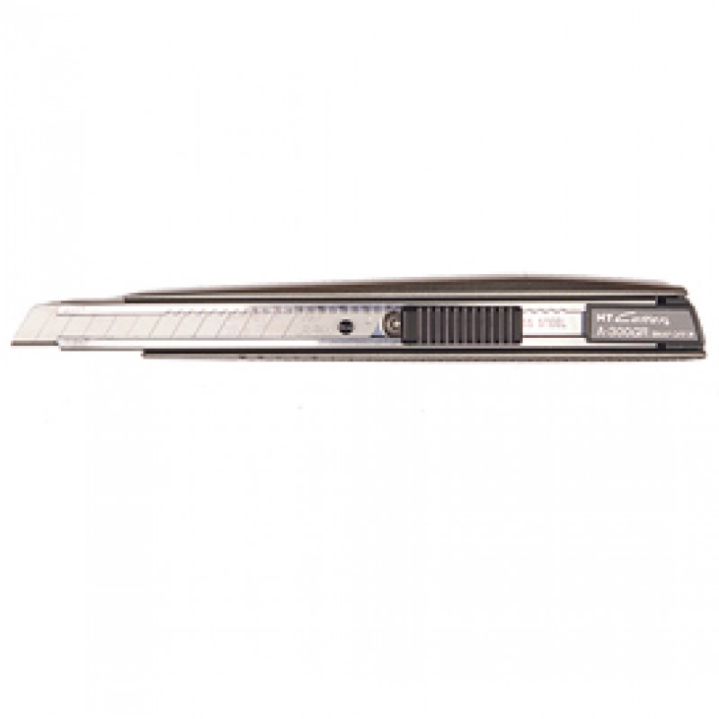 Cutter da ufficio con sistema di sicurezza a bloccaggio automatico. Larghezza lama: 8 mm. Impugnatura in alluminio stampato. Dotato di spezzalama.