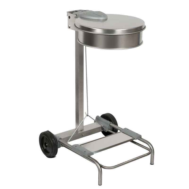 Reggisacco per raccolta rifiuti totalmente in acciaio da 110L. Dimensione: 54,6x60xH94cm. Haccp.