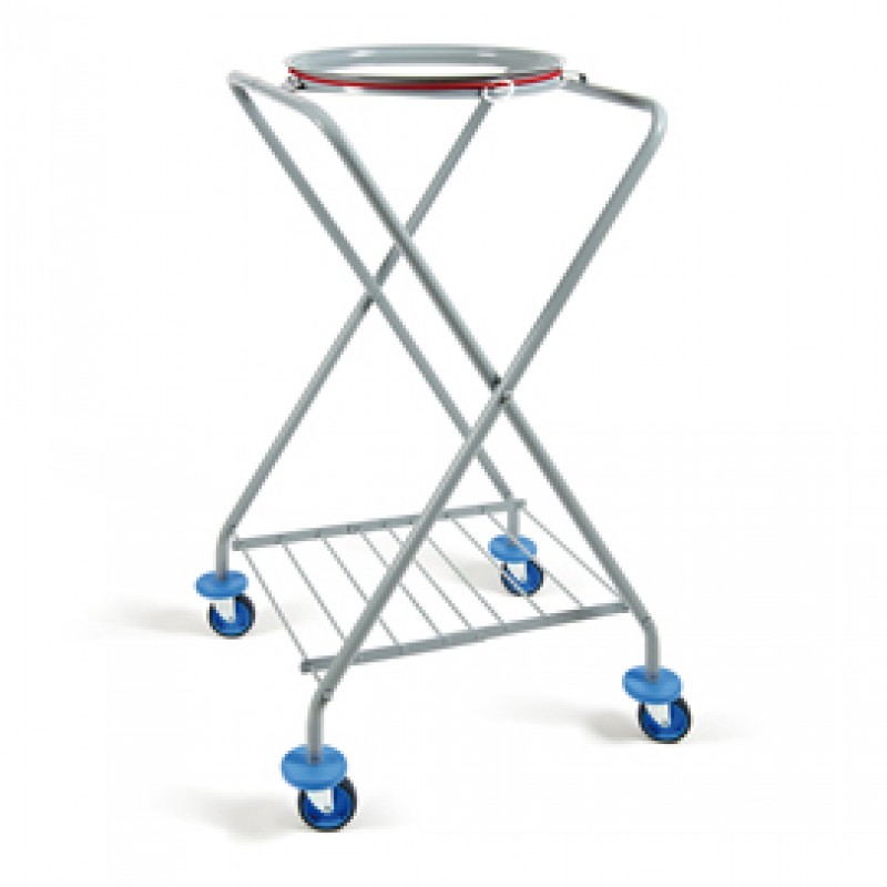 Carrello pieghevole dotato di pratico elastico ferma sacco. Struttura in ferro e polipropilene con 4 ruote pivottanti. Dimensioni: L58 x P56cm x H106cm.