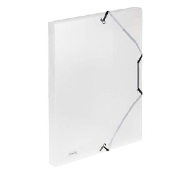 Cartelle realizzate in polipropilene trasparente con speciale finitura rigata. Chiusura con elastico piatto di colore nero. Formato utile: 24x32cm. Dorso 2,5cm. Made in China.