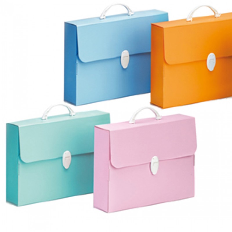 Valigetta in polipropilene alveolare colori pastello assortiti (azzurro, verde, arancio e rosa). Ma..