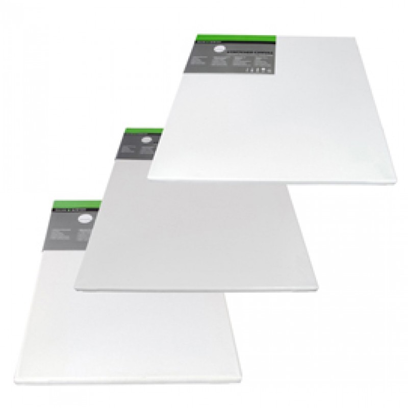 Cartone telato con tela a grana media, privo di acidi, tripla imprimitura e pronto all'uso. Graffatura sul retro. Appendibili senza incorniciatura.