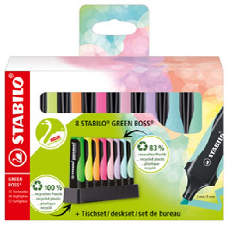 Evidenziatore Stabilo® Green Boss® - punta a scalpello - tratto 2 - 5mm - colori assortiti - Stabilo - deskset 8 pezzi