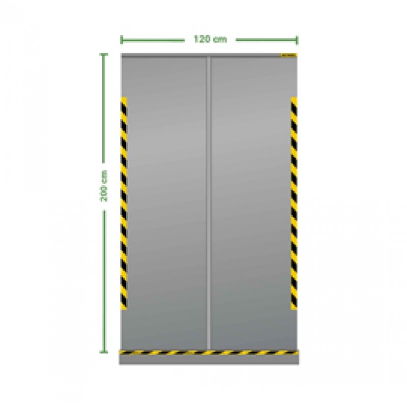 Schermo divisorio arrotolabile trasparente, utile per creare una separazione temporanea in qualsiasi ambiente. Leggero e facile da spostare. In vinile trasparente con base roll-up e asta in alluminio. Dotato di banda di demarcazione giallo/nero. Altezza 2 metri.