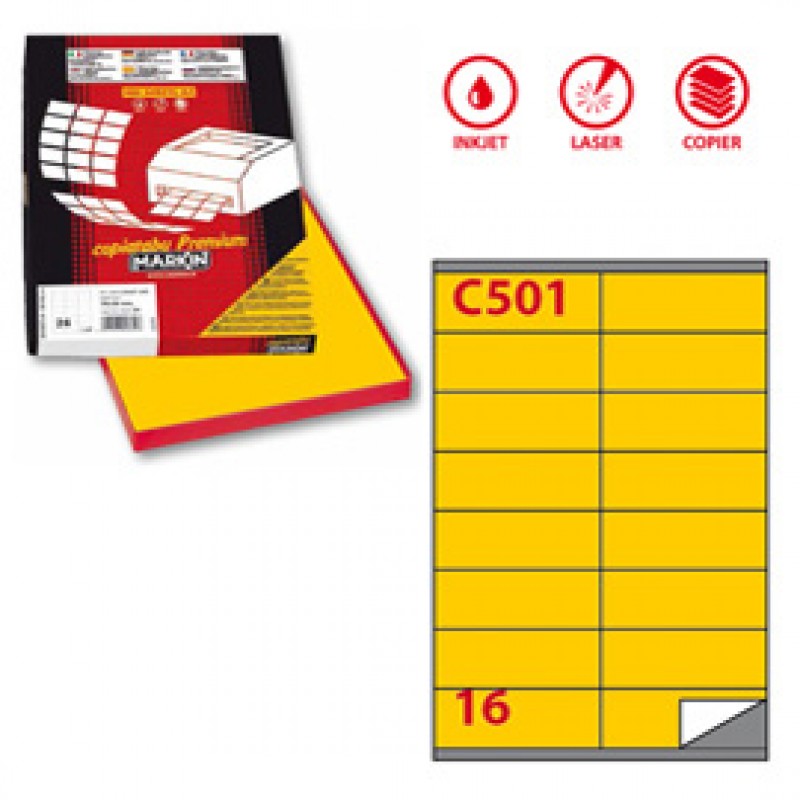 Etichetta adesiva C501 - permanente - 105x36 mm - 16 etichette per foglio - giallo - Markin - scatola 100 fogli A4