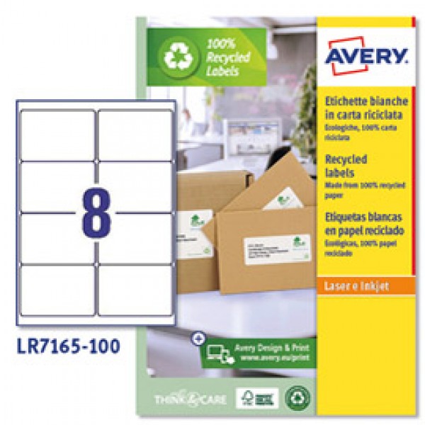 Etichette per buste e pacchi in carta riciclata - bianca - 99,1x67,7mm - 100 fogli - Avery