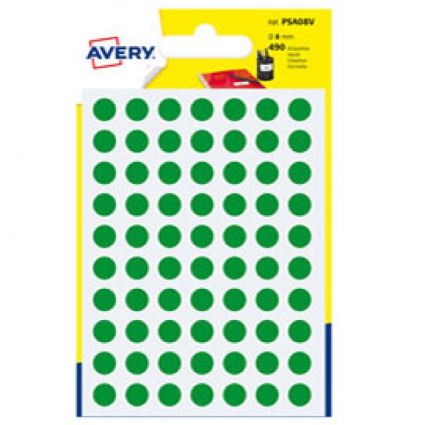Etichetta adesiva tonda PSA - permanente - ø 8 mm - verde - Avery - blister 420 etichette
