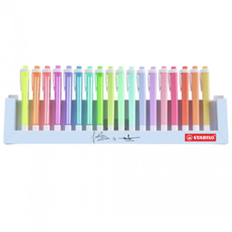 Evidenziatori Swing Cool Pastel - punta a scalpello - tratto 1 - 4 mm - colori assortiti - Stabilo - deskset 18 pezzi