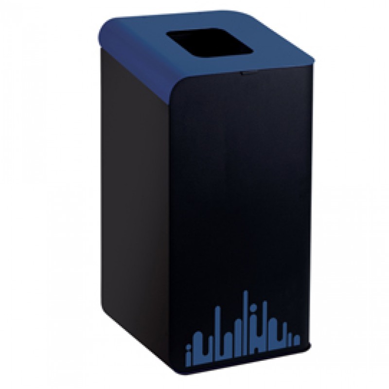 Gettacarte in metallo ideali per creare isole ecologiche perfettamente integrate con gli arredi degli ambienti interni. Struttura e profili in metallo verniciato e coperchio colorato per incentivare la raccolta differenziata. Foro superiore 16 x 20cm. Pratico sistema reggisacco integrato. Estrazione sacco tramite l'apertura dello sportello superiore. Fornito con adesivo colorato "skyline" già applicato. E’ possibile personalizzare la raccolta del contenuto con etichette pre-fustellate in vinile (disponibili sia scritte che icone). Kit ruote Ø40mm opzionale (ref. 789099). Coperchio colorato Blu. Dimensioni: L39 x P42,6 X H78cm – 14kg. Capacità: 80 litri. Made in Italy. Si consiglia di pulire la superficie con un panno morbido, imbevuto d’acqua o con un prodotto specifico non aggressivo. Non utilizzare detergenti contenenti acetone, metiletilchetone, percloroetano, toluene, tricloroetano, xilene, idrato d’ammonio, idrato di sodio.