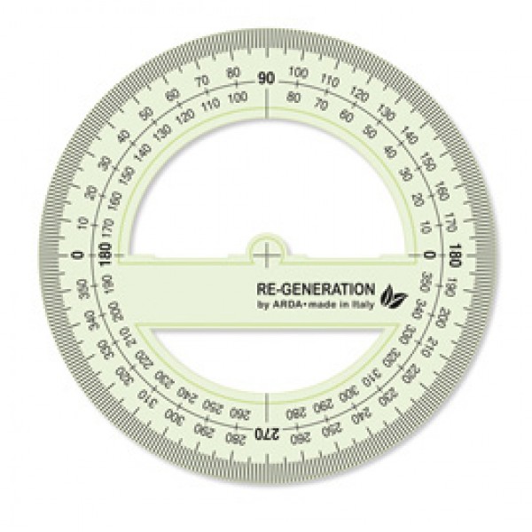 Goniometro 360° 12cm realizza in materiale plastico ecosostenibile riciclabile al 100%. Con smusso ..