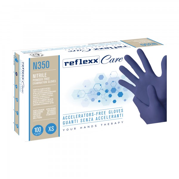 Guanti nitrile ipoallergenici N350 - senza acceleranti - taglia XS - blu - Reflexx - conf. 100 pezzi