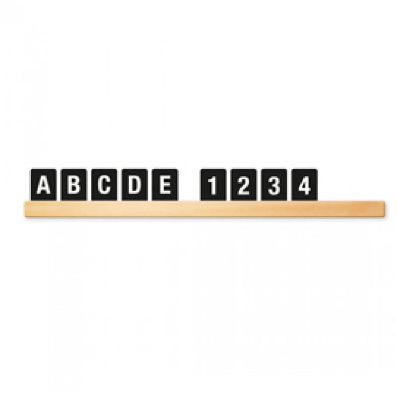 • 169 tessere bianche e nere (lettere e numeri fronte e retro). Dimensioni: 3x4,5cm.