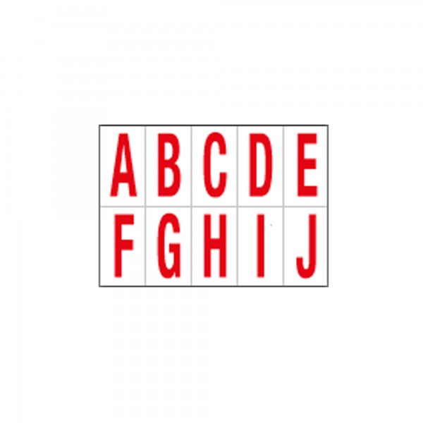Lettere adesive da A a J - in PVC - 70 x 124 mm - 10 et/fg - 1 foglio - rosso/bianco