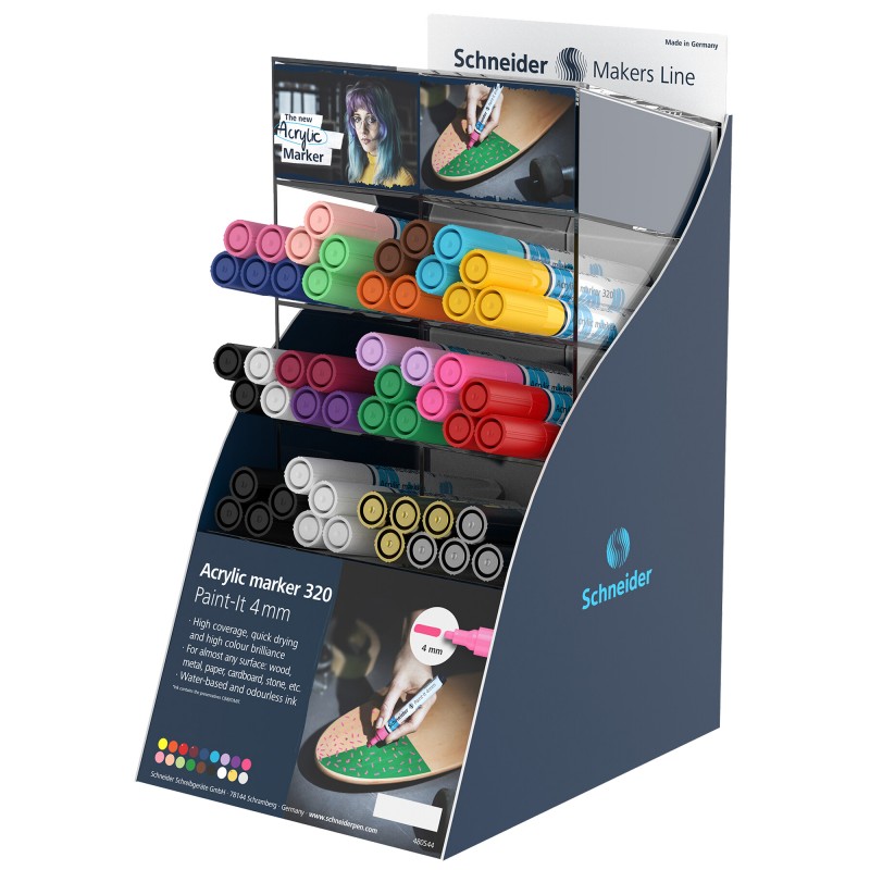 Marcatore acrilico Paint-it 320 - punta 4 mm - colori assortiti - Schneider - expo 52 pezzi