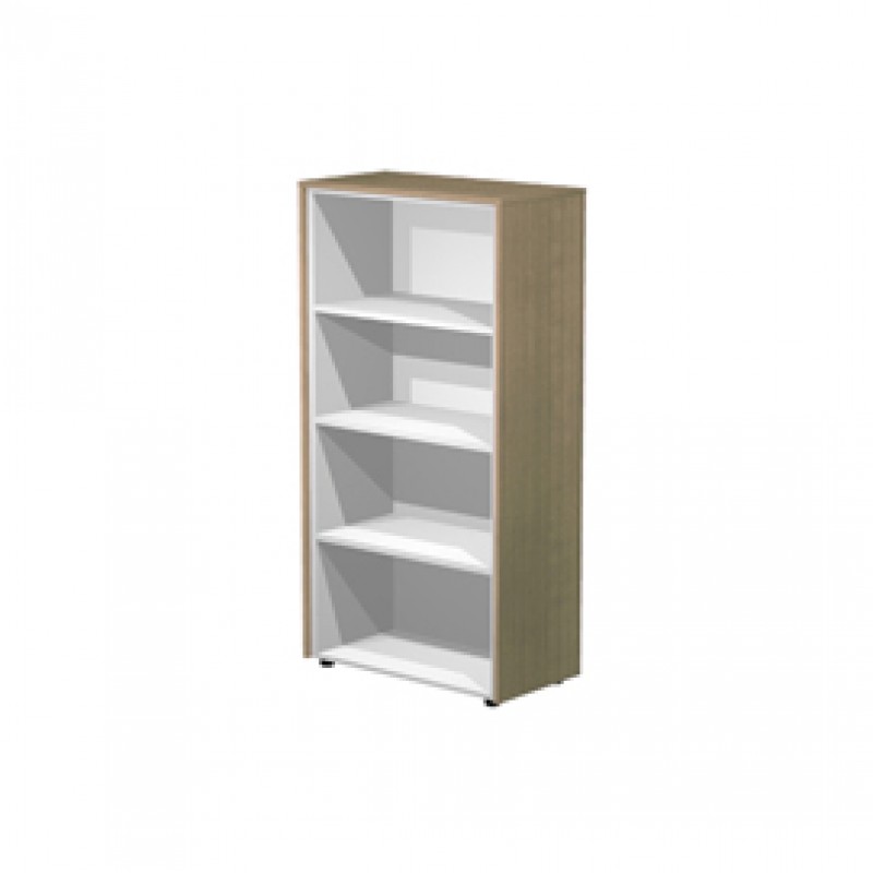 Struttura colore grigio alluminio. Top e fianchi finitura (sp. 14 mm) colore nero venato frassino e ciliegio arabis. Top, base e fianchi sp. 18 mm. Ripiani regolabili in altezza sp. 25 mm. Schiena sp. 10 mm. Piedini livellabili dall’interno. Disponibili moduli singoli e doppi con top finitura unico. I mobili possono essere allestiti a giorno o completi di ante con serratura. Mobile medio-alto a giorno, 3 ripiani spostabili. L82,8 x P43 x H152,2cm.