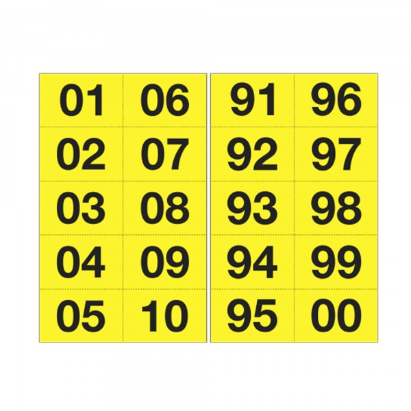 Numero adesivo da 01 a 99 - 44 x 34 mm - 10 et/fg - 10 fogli - nero/giallo