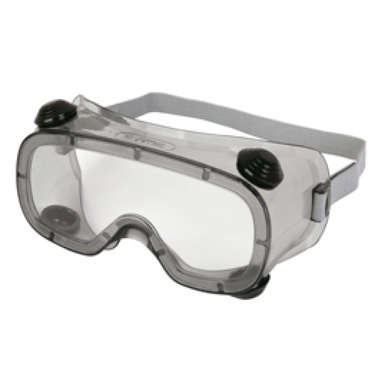 Occhiali a maschera in policarbonato incolore. Montatura flessibile in PVC. Ventilazione indiretta tramite 4 aeratori. Fascia in tessuto elastico. Proteggono contro gli schizzi di media energia 120. Cetgoria DPI: 2. Certificazione CE. Conformità alla norma EN166:2001.