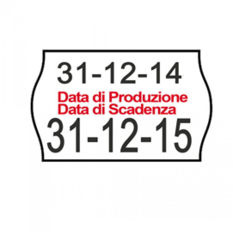 Rotolo da 1.000 etichette a onda 26x16mm con dicitura "Data di Produzione / Data di Scadenza". Confezione 10 rotoli.