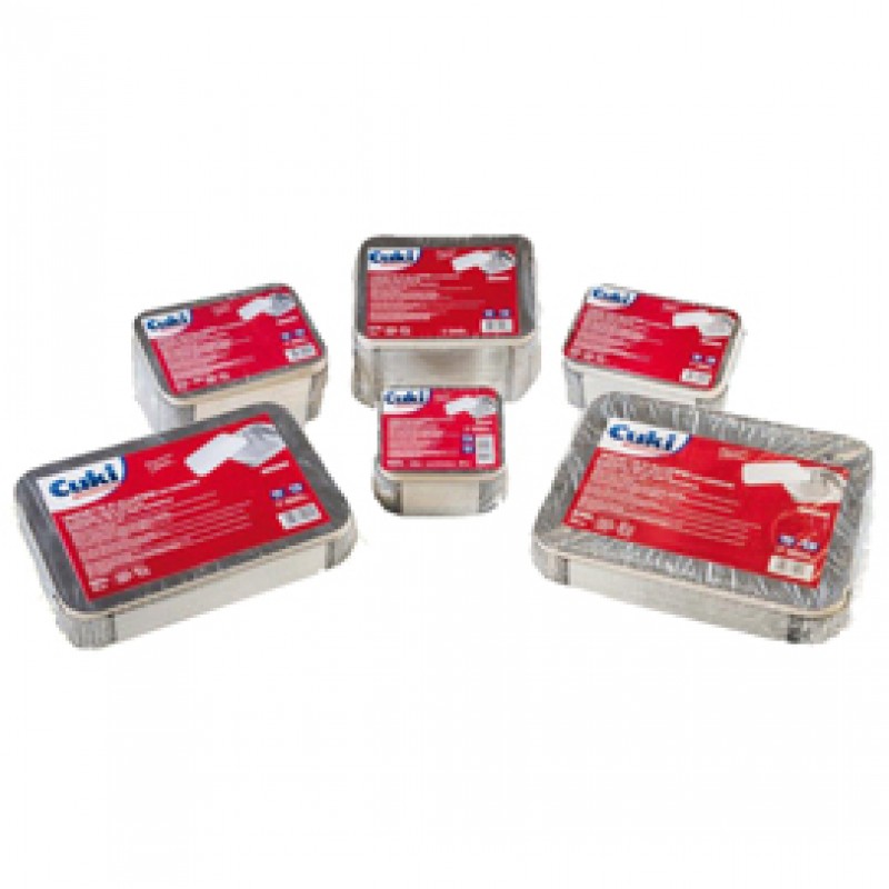 Contenitore in alluminio - 31,5 x 21,5 x 4,2 cm - 6 porzioni - coperchio incluso - Cuki Professional - pack 25 pezzi