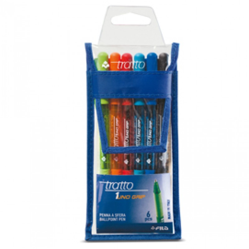 Penna a sfera con cappuccio Tratto1 Grip - punta 1,0mm - colori assortiti - Tratto - busta 6 pezzi