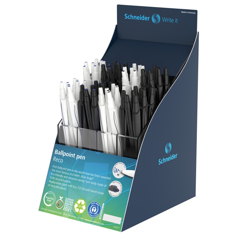 Penna a sfera Reco - plastica riciclata - colori assortiti - Schneider - expo 60 pezzi